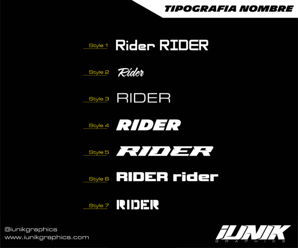 CALIDAD: Todos nuestros kits son impresos y laminados en los mismos materiales que se usan en el AMA & MXGP. Este material tiene canales de aire en su pegamento que permite la fácil instalación sin burbujas.