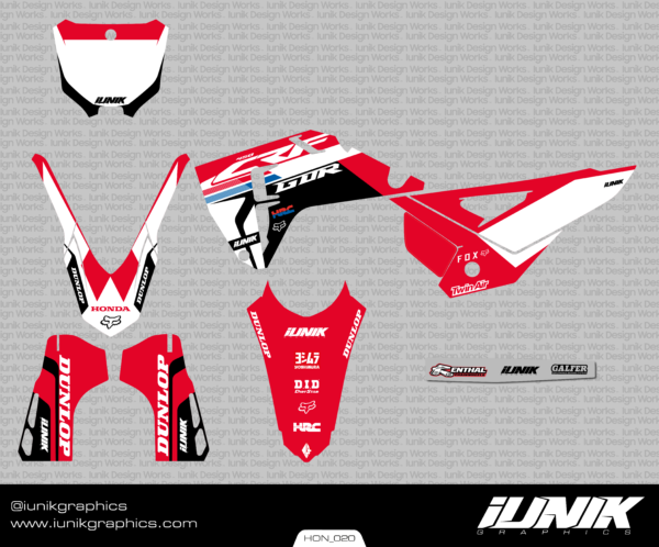 CALIDAD: Todos nuestros kits son impresos y laminados en los mismos materiales que se usan en el AMA & MXGP. Este material tiene canales de aire en su pegamento que permite la fácil instalación sin burbujas.