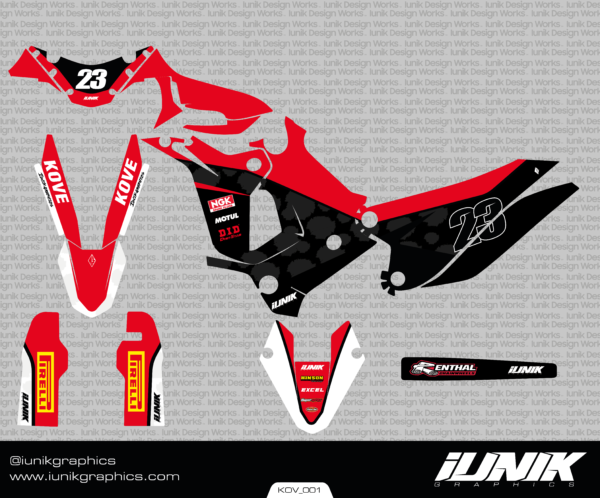 CALIDAD: Todos nuestros kits son impresos y laminados en los mismos materiales que se usan en el AMA & MXGP. Este material tiene canales de aire en su pegamento que permite la fácil instalación sin burbujas.